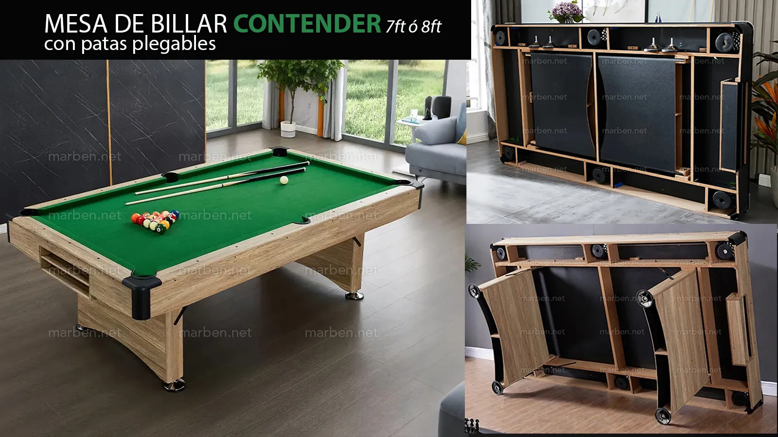 Mesa de Billar CONTENDER - plegable de 8ft (2.44 x 1.37) - Color Velvet